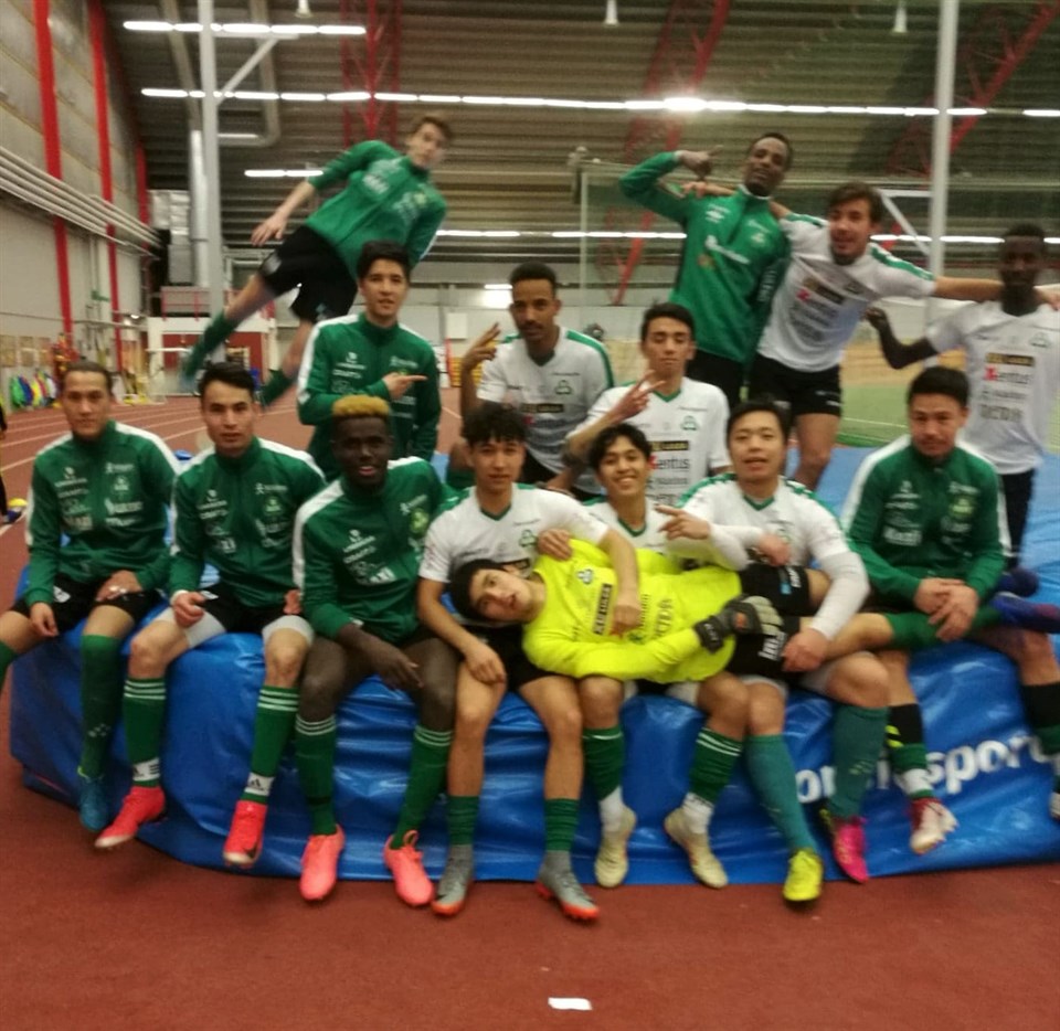 Efter att fått vila några timmar var det dags för dagens andra match. Vi ställs mot Ohtana/Aapua som ser stora och tunga ut. Matchen drar igång och återigen håller vi jämna steg med motsåndarna. Första 20 minuterna är det väldigt jämnt. Lagen byter halvchanser med varandra. Inför matchen har vi pratat om att hålla ihop laget, släppa bollen snabbt och ha snabba omställningar. Vi vill utnyttja vår fart och inte gå in i närkamper. I minut 21 hinner vi inte riktigt flytta över laget och sätta press vilket resulterar i att bollen sitter i nätet. Nåja, ingen hänger med huvudet utan vi fortsätter jobba bra. Skapar några riktigt bra lägen för kvittering men det vill sig inte, skotten blir antigen för lösa eller så går de utanför målet. Istället så ökar Ohtana på till 2-0 i minut 33 med en fin djupledsboll mitt mellan våra mittbackar. Vi håller ihop det bra resten av matchen och matchen slutar 0-2. Vi är mycket nöjda över att vi presterar så pass bra mot ett lag som normalt spelar en division (två?) högre än oss. Bara att ladda om till nästa match mot Haparanda som spelas sent på kvällen (22.10) Grabbarna har hängt tillsammans i hallen i några timmar och när matchuppvärmingen startar är det på ett väldigt lekfullt sätt (se vidoklipp). Eftersom vi inte har någon chans att gå vidare till slutspel så chansar vi lite med att ställa Ali i målet (helt oprövat kort) för att Erik vill spela en match ute. Vi pratar om samma saker inför denna match som tidigare, ännu viktigare att vara på tå efter en lång dag. Matchen drar igång och återigen så står vi coacher och ler på sidan om. Killarna går ut och leverarar återigen. Nu är det vi som håller i taktpinnnen och kommer till många fina anfall. Efter bara fem minuter skjuter Fereydoon bollen in i mål på ett fint pass från Linus och vi tar ledningen med 1-0. Vi fortsätter med vårt fina spel och det känns som om att tvåan snart sitter. I stället är det Haparnada som kvitterar till 1-1 i minut 20 på en fast situation. Ali har gjort det bra i sin debut i målet, men är chanslös nu. Killarna tar tag i spelet direkt...Linus kommer med fart genom mittfältet, förbi deras backar och passar en helt frisående Amir som har öppet mål!! Men på något sätt hinner målvakten dit och räddar. Returen går rakt ut mot Linus som blir reält kapad påväg mot bollen och vi får straff. Farah stegar fram och sätter den säkert...vi leder med 2-1 i minut 24. Matchbilden håller i sig, vi rullar boll bra och håller Haparanda från vårt mål fram till när det återstår ca 7 minuter av matchen. Vi får göra några oplanerade byten på grund av skador och det blir lite rörigt på planen för en kort stund. Då kvitterar Haparanda till 2-2 i minut 39. Efter det så tappar vi helt positionerna ute på planen och vi trycker upp med massor av folk för att avgöra. Vi får några riktigt bra chanser men åker på en kontring och Ali kan inte göra något i målet 2-3 i minut 42. Efter det så går luften ur killarna och även om de försöker jaga kvittering så orkar vi inte och Haparanda får göra två mål till inom en minut. Matchen slutar 2-5- Det var besvikna killar efter slutsignalen för vi kände alla att den här matchen hade vi kunnat vinna. Men efter lite snack i omklädningsrummet så tror jag att de flesta ändå var rätt nöjda över lagets prestation denna dag. Det kommer att bli spännande att se om vi kan hålla i detta fina spel när säsongen drar igång. Det vi behöver fokusera på är KONDITIONEN...ska vi orka spela med den fart vi vill så måste vi orka i 90 min. Sammantaget en riktig rolig cup som gav positiva besked och en bra känsla inför fortsättningen.