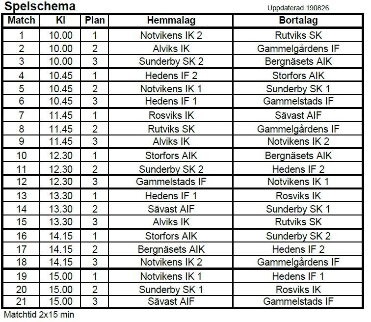 Spelschema lördag 7/9 Notas 7 mot 7-cup