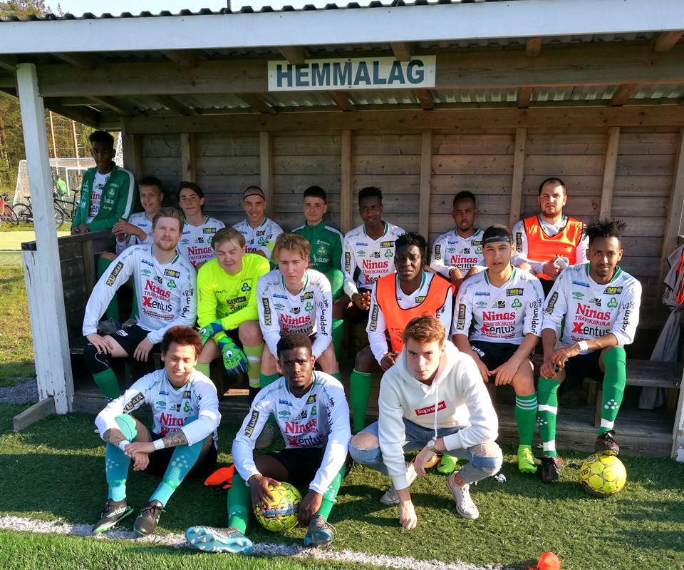 Strålande sol och härlig värme mötte oss på bergsvallen torsdag eftermiddag. Lite pust och stönfrån killarna...de tyckte det var för varmt!! Vi kör igång med uppvärmingen, ser bra ut trots värmen! När det är 30 minuter till start har det inte dykt upp några motståndare ännu! Vi börjar ringa och smsa för att hör vad som hänt, får inget svar. Killarna börjar snacka om WO. När det är 10 minuter kvar så dyker EN spelare från Nybyn upp...han meddelar att det varit bilstrul på vägen och att resten kommer snart. Matchstart flyttas fram 30 minuter. Inför matchen pratar vi om att ligga nära, inte släppa ytor på mittfältet och att jobba stenhårt. Det fungerar sisådär i matchinledingen. Nybyn får komma till 3-4 bra lägen de första fem minutrarna. Därefter börjar vi vinna lite boll och det jämnar ut sig spelmässigt. I minut 15 så är Hamid kvick i fötterna och läser spelaet bra. Han lyckas bryta ett pass i deras backlinje och kommer fri med målvakten. Hamid sätter bollen säkert i mål... 1-0! Spelet böljar lite fram och tillbaka, men det känns ändå rätt stabilt. I minut 31 kommer Nybyn i ett anfall och krånglar in bollen till 1-1 och det resultatet står sig till paus. Under pausen pratar vi om att fortsätta med det vi gör, jobba hårt, försöka variera korta och långa pass och att hjälpa varnadra ute på planen. Andra halvlek drar igång och det är som om det är ett helt annat lag på planen. Vi tappar bollen hela tiden, bolltempot är så lågt att Nybyn hinner få tre killar runt bollhållaren och de kan lätt ta tillbaka bollen. Vi får ett långt lag då killarna inte orkar jobba till rätt position. Snacket på plan existerar inte...ja det är inte många rätt på planen. 1-2 kommer i minut 53 på en tilltrasslad situation efter en hörna. Yonas lyckas nästan rädda bollen på mållinjen men Nybyspelaren sparkar både boll och Yonas huvud in i mål...borde kanske ha varit frispark för oss!? Matchbilden ändras inte nämnvärt och slutresultatet 1-3 fastställs i minut 69. Vi är absolut inte nöjda med vår prestation denna match...framförallt inte i den andra halvleken. Killarna fick i uppgift att fundera på vad var och en kan förbättra till nästa match (som spelas redan på lördag). Kul att se våra unga killar, Joel Kvarnlöf (P04) och Alexander Hellman (P04) ta för sig ute på planen. Ni är varmt välkommen igen!