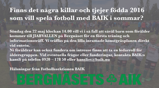 Hej, Uppstart fotboll för barn födda 2016