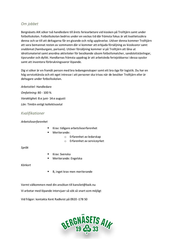 Hej, vill du eller känner du någon som vill jobba som handledare med oss på Trolltjärn i sommar? Varmt välkommen med din ansökan till oss!