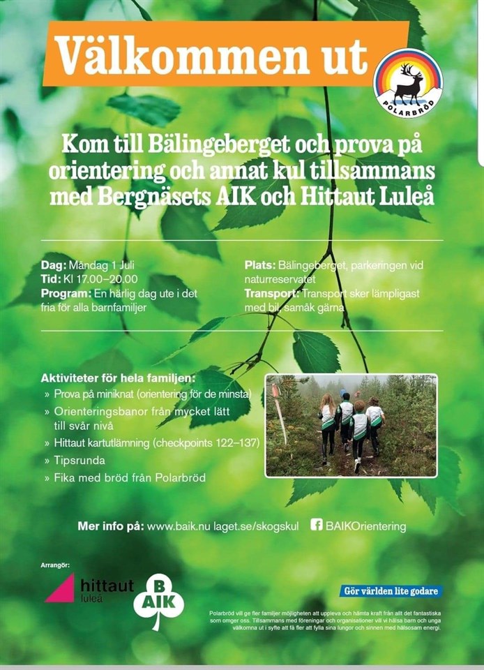 I samband med hittauts checkpointsläpp i Bälinge arrangerar BAIK en prova-på-dag i orientering. Miniknat, orienteringsbanor för alla, fika, tipsrunda, hittaut kartutlämning, lär dig orientera, mm. 1 juli 17.00-20.00. Välkomna!
